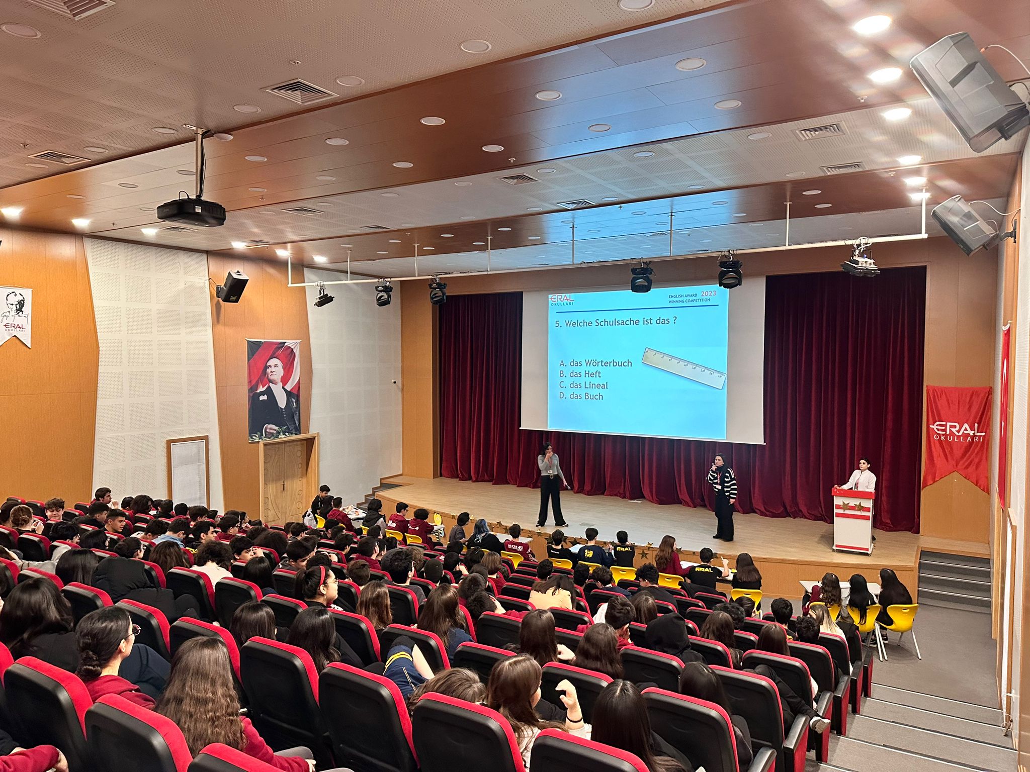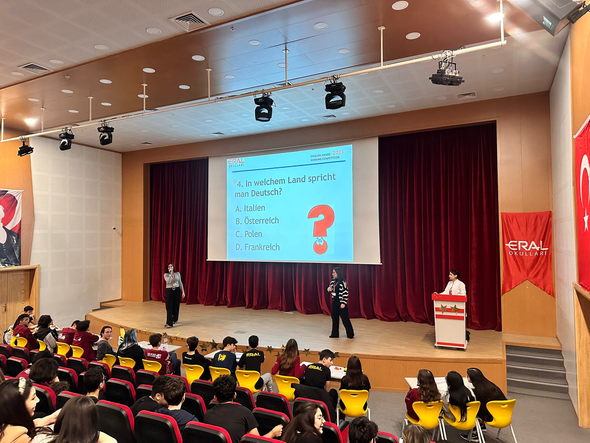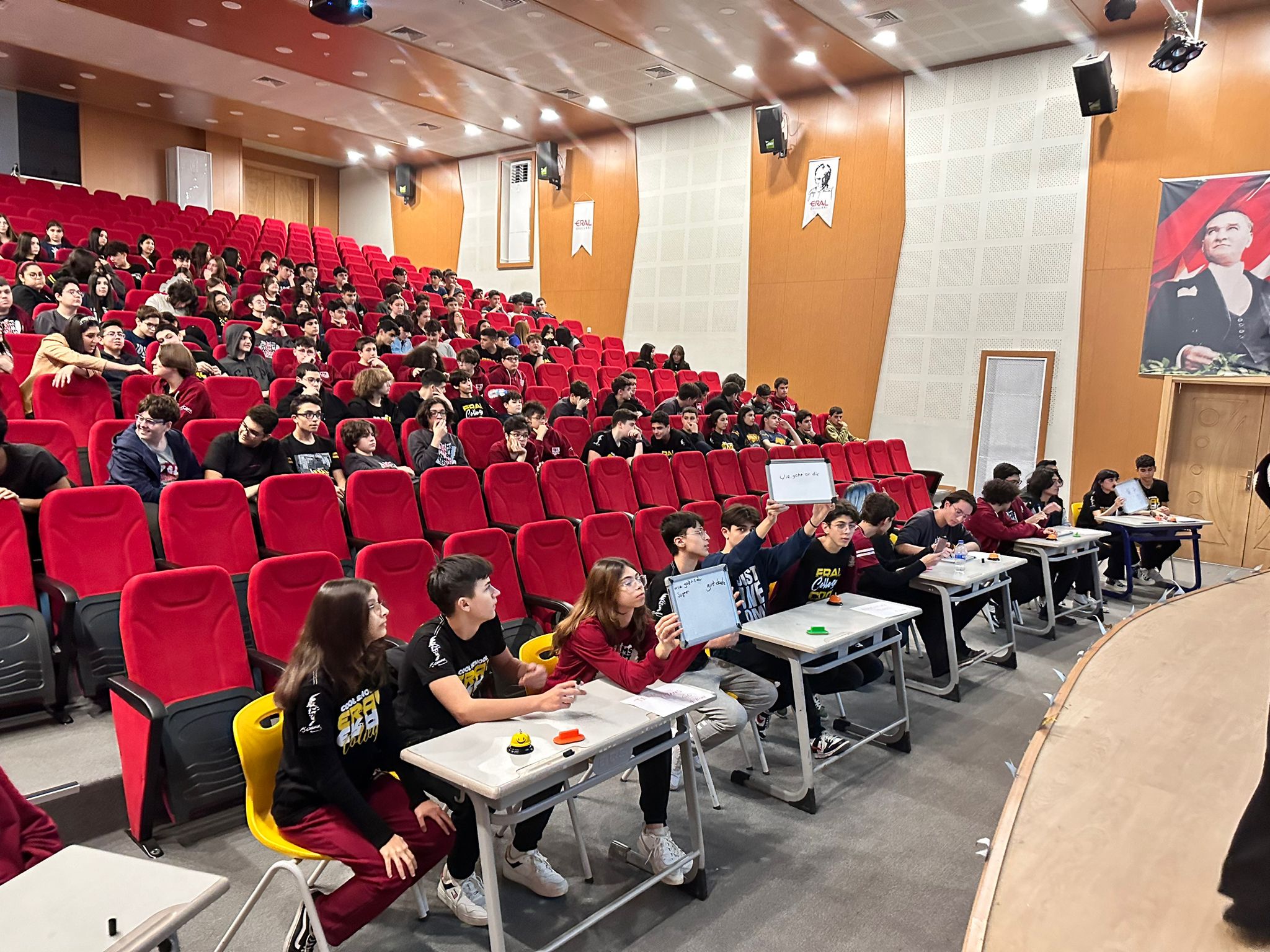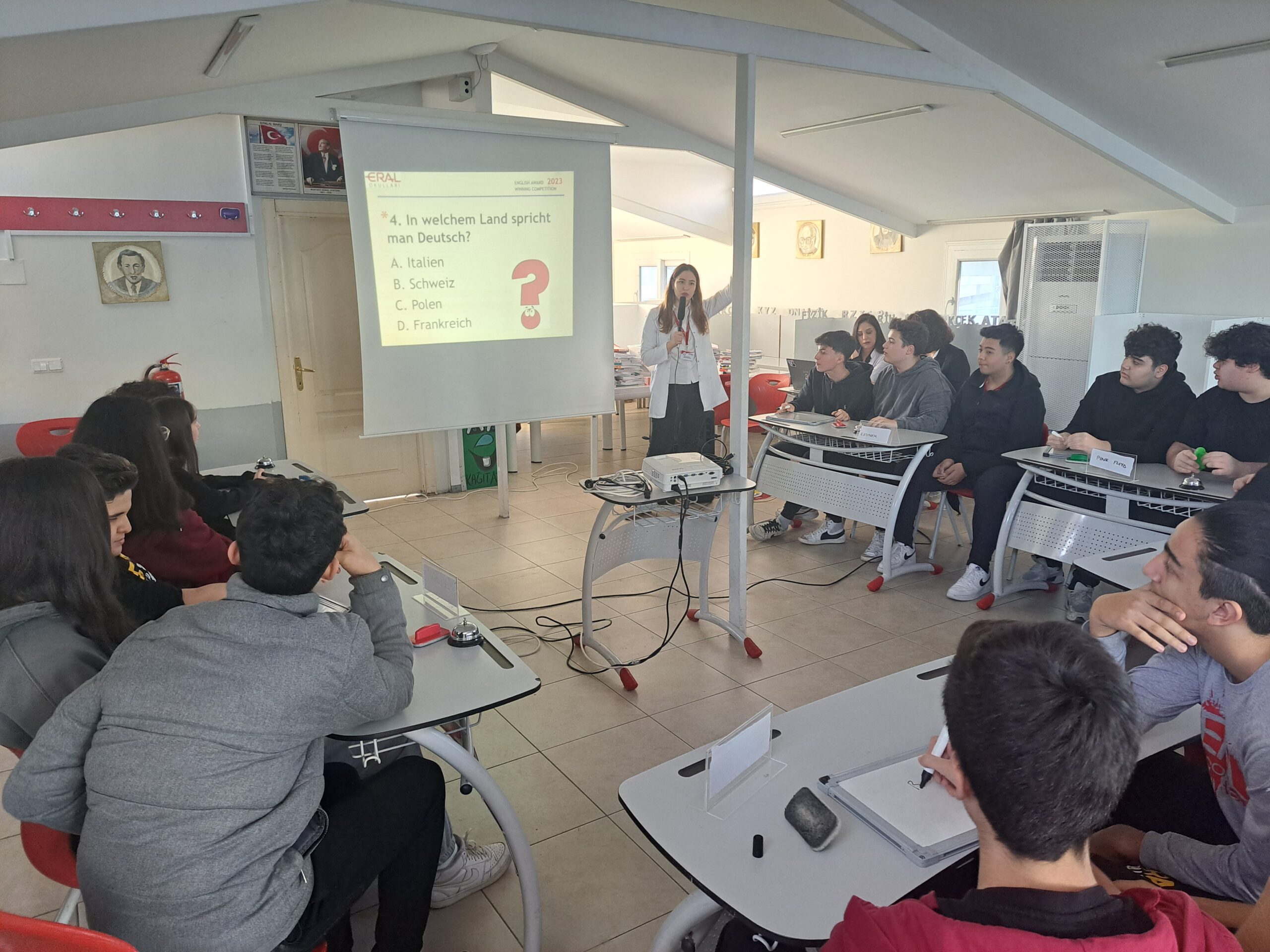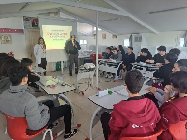 Kampüs ve Güzelyalı 9. ve 10. sınıflarımız arasında her yıl geleneksel hale gelen İngilizce ve Almanca Quiz Show Finali kıyasıya bir mücadele ile tamamlandı. Finale kalan gruplar ile başlayan final yarışmamız sonrasında Kampüs lisemizden10 FEN sınıfımızdan Borsacılar grup ismi ile Oraj Zeki Orel, Poyraz İnanç, Rüzgar Eren Karakelle isimli öğrencilerimiz OUROBOURS isimli grup isimleri ile şampiyon olurken ,Güzelyalı Lisemizden 10 Fen sınıfından Daisy Wasser grup isimleri ile Doruk Gümüş Altay, Muazzez Yade Ateş ve Öykü Su Koçak isimli öğrencilerimiz birinciliği aldılar.