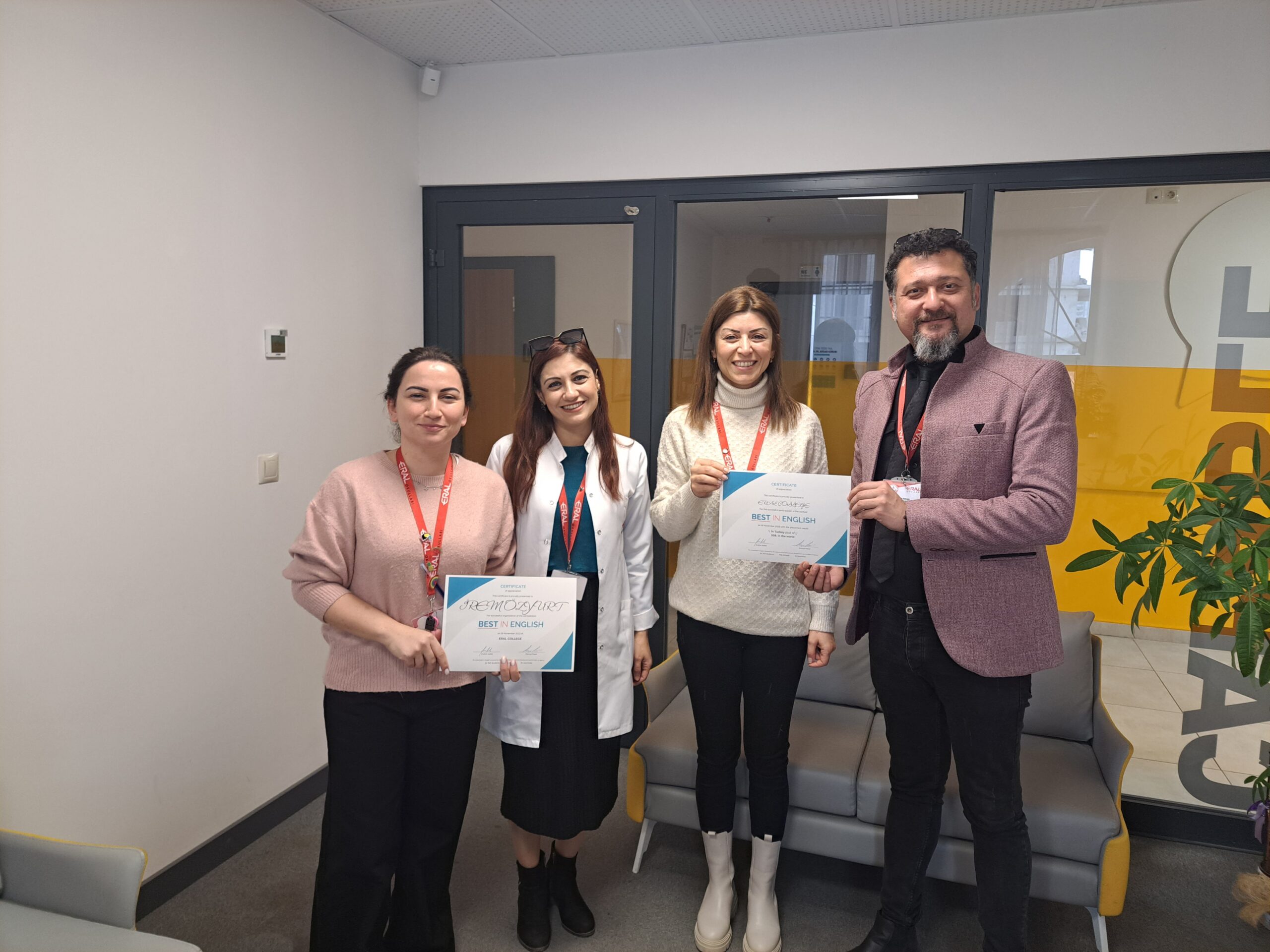 16 Kasım 2023 tarihinde okullarımızda uyguladığımız ve B1-C2 düzeyinde dil yeterliliğini ölçen Uluslararası Lise Çevrimiçi İngilizce Dil Yarışması olan Avrupa Birliği onaylı dil onaylı BEST IN ENGLISH sertifikaları sınava katılım gösteren tüm öğrencilerimize teslim edildi. Dereceye giren öğrencilerimize ise törenle takdim edildi. Projeyi sürdüren Lise öğretmenlerimize ise sertifikaları Lise Müdürümüz Sn. Esin EKİNCİ tarafından verildi. Okulumuz adına gelen sertifika için BEST IN ENGLISH proje ekibine teşekkür eder, tüm öğrenci ve öğretmenlerimizin başarılarının devamını dileriz.